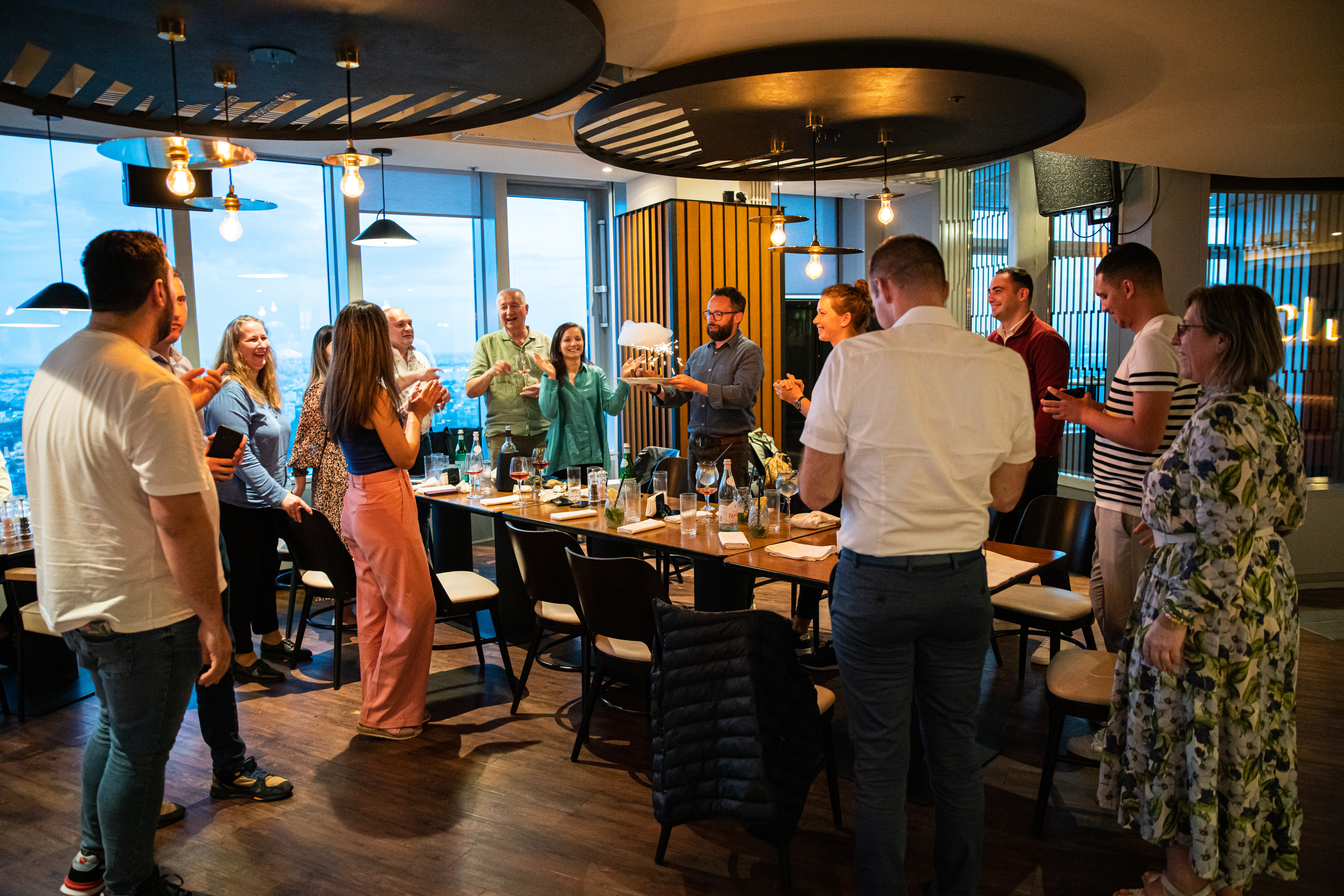 Sărbătorește momentele importante cu cei dragi, deasupra luminilor orașului.
